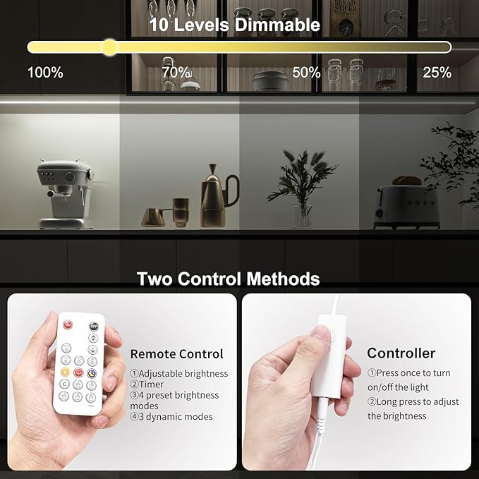 - Super Bright&Brightness adjustable:Super bright LED cabinet lights delivers total 1500 lumen,Came with RF dimmer to adjust the brightness.CRI>90, 960 LEDs.Provides high quality kitchen lighting