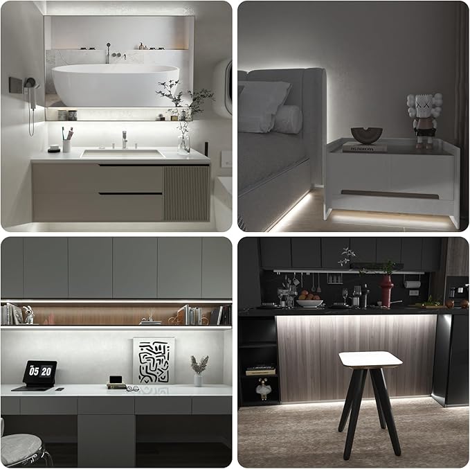 - DIY LED light: total 9.8 ft,this counter light is very soft and suitable for many occasions.Such as cabinets,closet, desk,TV back,bookshelf, bed, wardrobe,cupboard,counter,display case etc
