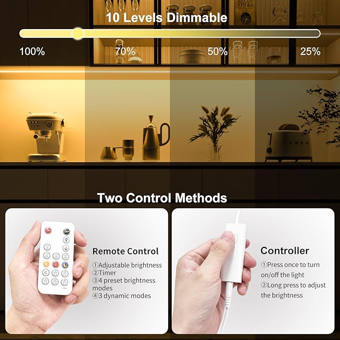 - Super Bright&Brightness adjustable:Super bright LED cabinet lights delivers total 1500 lumen,Came with RF dimmer to adjust the brightness.CRI>90, 960 LEDs.Provides high quality kitchen lighting