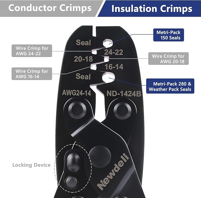 - METRI-PACK & WEATHER PACK CRIMPER: Specifically crafted to streamline the assembly process of the Metri-Pack 150 & 280 and Weather Pack connector lines, ND-1424B are your gateway to precision and efficiency.