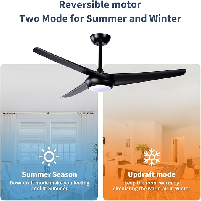 - 【Outdoor Ceiling Fans with Lights】KINDLOV 52 inch ceiling fan with light features a matte black finish blends ideally with 3 fan blades with curved design to improve the efficiency and performance of the fan;built-in LED light for longer life compared to traditional bulbs.With a simple and stylish design,black ceiling fan is suitable for any room such as living room,farmhouse,office,including covered patio,porch,gazebo,adding a sleek and modern feel to the space.
