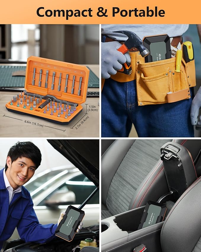 - 42-IN-1 Screwdriver Kit: Equipped with 40PCS S2 magnetic chromium-molybdenum alloy steel bits, the diameter is 6.35mm (1/4), including 32PCS 25mm short bits, PH (4 PCS), SL (4 PCS), Torx (10 PCS), Hex (9 PCS) and PZ (3 PCS), U-shaped (2 PCS), 8PCS 45mm long bits