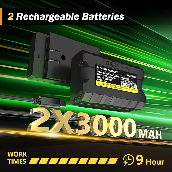 - Long-lasting Rechargeable Batteries: 3X 360 laser level featuring 2x3000mAh rechargeable batteries, this laser level can work continuously for up to 28 hours at the lowest brightness setting and 10 hours at the highest.; The USB type-c charging interface enables fast and convenient charging