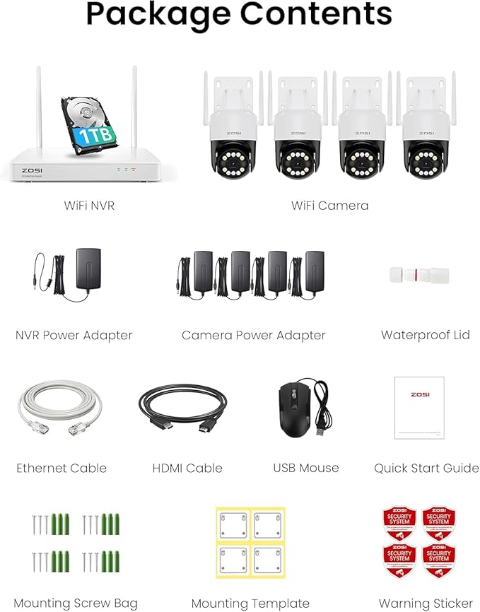 - 【Two-Way Audio & Remote Access】Built-in mic and speaker let you stay in touch with your household. Remote access and control anytime anywhere you want. Check in with the family or tell your dog to stop barking, or say hello through the ZOSI Smart App.