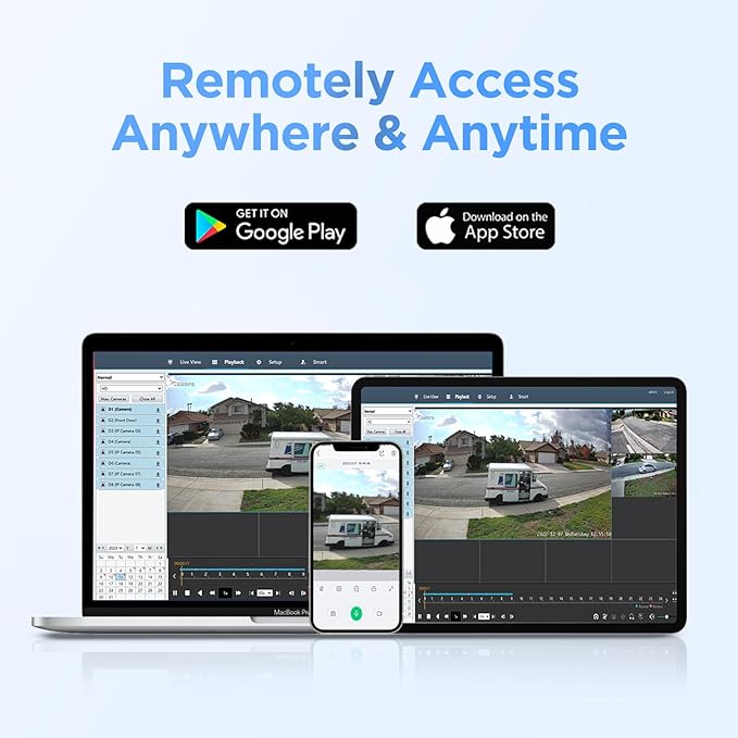- Remote Monitoring: Panoob PoE NVR APP "GUARD VIEWER" allows you to access all the cameras, you can check the monitoring areas that you cared about anytime and anywhere.