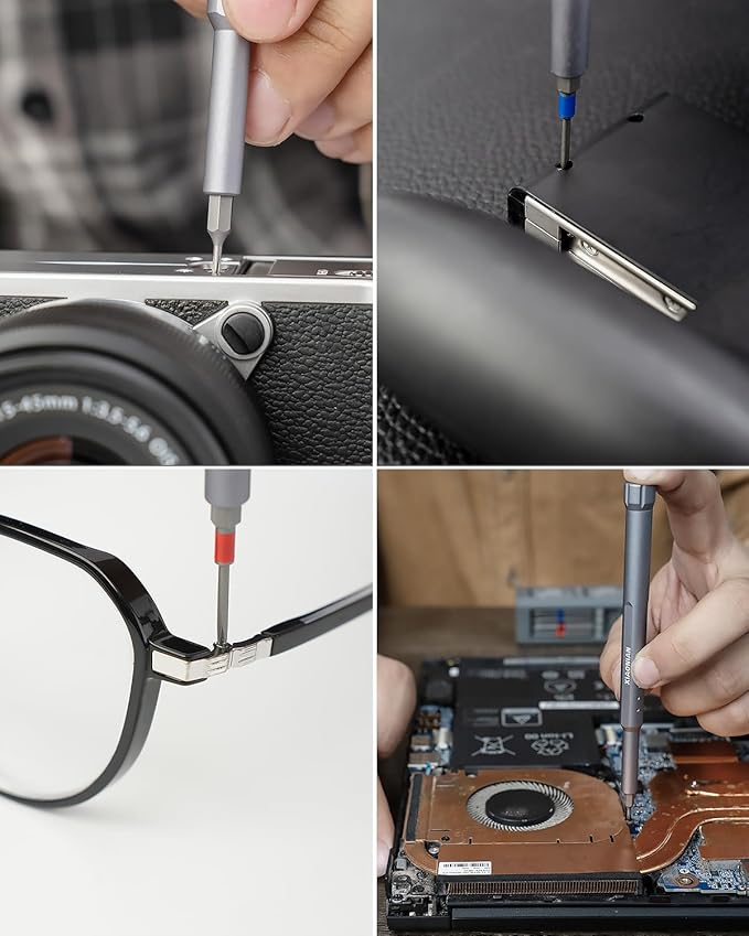 - 【Wide Applications】 XIAONIAN micro screwdriver set include 30pcs H4*28mm double-ended S2/CRV steel bits, 8pcs H4*39mm colored extended magnetic bits (Star, Phillips, Pentalobe, Torx, Hex,Slotted, Triangle, Square and other types) 1 pc tweezers and 1 pc crowbar. The precision screwdriver set can be used to repair electronics, phone, computer, pc, laptop, macbook, pc5, xbox controller, watch, eyeglasses, camera, toy, model, and more. Tool Gifts for men.