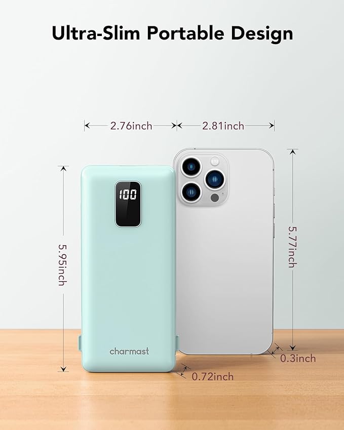 - Say goodbye to tangled wires and multiple chargers with the Charmast Portable Charger. Its built-in cables make it compatible with iPhone 16/16 Plus/16 Pro/16 Pro Max, iPhone 15/14/13 Series, Samsung Galaxy, all cellphones, so you can travel light without worrying about charging issue.