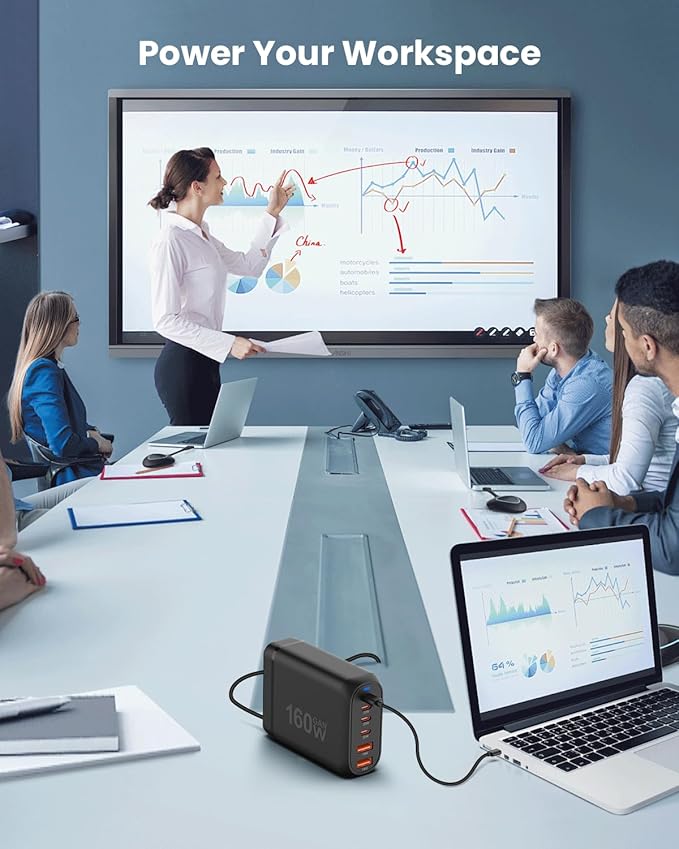 - ⚡ Total 160W 6-in-1 USB C Charging Station: Which devices will you charge with this 6-in-1 USB C fast charging station? Boasting 4 x USB-C ports (total 125W) and 2 x USB-A ports (total 36W), this multi port wall charger is capable of delivering power for 6 devices at the same time while saving space and keeping your desktop tidier.