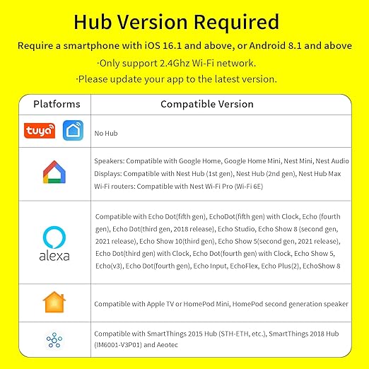 - [App and Voice Control] Can be connected via traditional wifi connection or matter. No hub required for wifi connection. Just use the free and hub-free Smart Life APP or Minoston APP to add this matter wifi smart plug. It can be controlled using voice command. Compatible with Siri, Alexa, Google Assistant and Smartthings (hub required). Update the hub to the lastest version before you add it