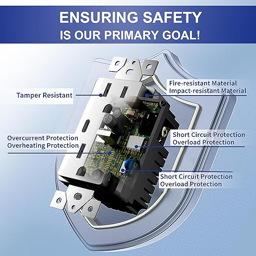 - 【Enhanced Safety & Comprehensive Protection】Constructed with PC(V0) fire retardant material on the product surface and featuring multiple internal protections, our product ensures the utmost safety for your devices by guarding against overcurrent, short circuit, and overvoltage. It is UL safety certified, attesting to its reliability. Moreover, the 15A TR Receptacle heightens safety measures by preventing unauthorized objects from entering the outlet.
