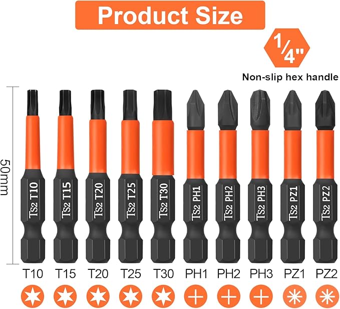 - 【High Quality Materials】Made of High Quality TS2 chrome vanadium steel materials, The black phosphate coating resists corrosion and increases the life of the bits, Strong rust and corrosion resistance, The high temperature quenching treatment Improves durability and life.