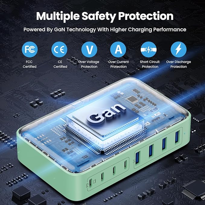 - 【Latest GAN III Chip Technology Charger Station】The USB C charger adapted GaN III generation chip technology, built-in multi-protection system and premium microchips. With higher energy efficiency, higher resistance to radiation and upgraded heat dissipation, Gallium Nitride (GaN) makes our chargers smaller and safer without sacrificing a drop of power. Trustworthy Charging Station with 3 Years Warranty!