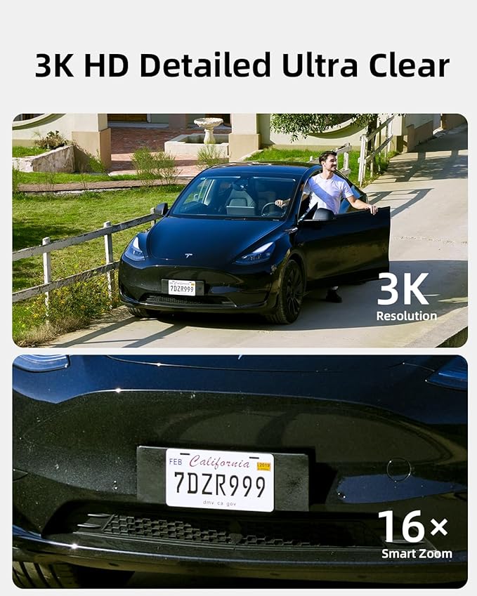 - 【Ultra HD 3K Surveillance with 16x Zoom】Professional-grade 5MP ultra HD monitoring with 3K resolution (2440×1560) delivers razor-sharp details, outperforming standard security cameras outdoor. The starlight sensor and f/1.6 aperture capture vivid color video even in near darkness, while 16x digital zoom clearly identifies faces 50ft away—ideal for license plate reading or driveway monitoring.