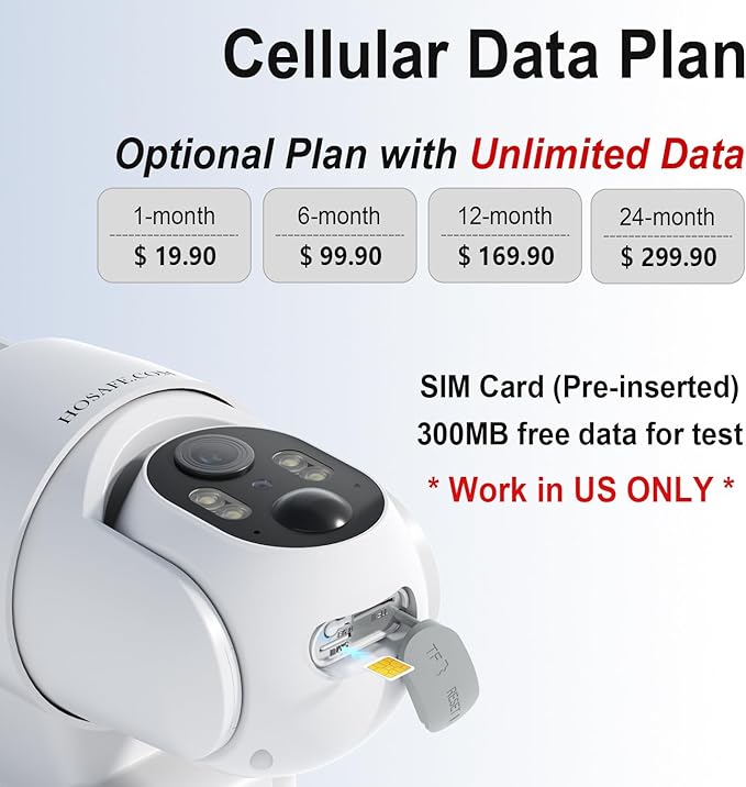 - 【Built-in SIM Card & Subscription Plan】: Including a pre-installed and prepaid 4G LTE SIM card with 300MB trial data, Unlimited data plans start at $19.90 monthly to $169.90 yearly per solar camera (other data plans available), easily pay in Ubox app.