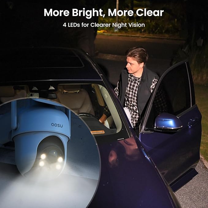 - 2K Resolution, Day and Night Clarity: Capture every event that occurs around your home in 3MP resolution. More than just daytime, 4 LED lights increase the light source by 100% compared to 2 LED lights, allowing more to be seen for excellent color night vision.