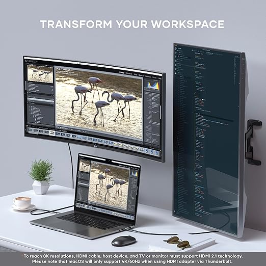 - Improved Display – The Satechi USB C to HDMI 8K Cable supports ultra-hi-resolution up to 8K/60Hz, 4K/120Hz/60Hz HDMI video output for a stunning display whether you are working, streaming, or gaming. To reach 8K video output using this USB C to HDMI cable you will need to use a computer/TV that supports 8K. Note: macOS supports up to 4K/60hz.
