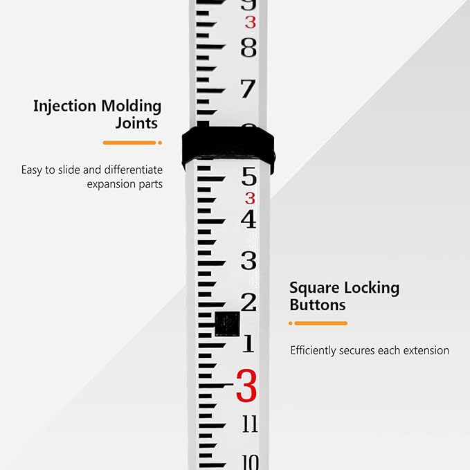 - CLEAR MARKINGS:With dual graduations of an engineer’s scale feet/tenths on the front and standard feet/inches on the back, this leveling grade rod conveniently and clearly provides the measurements you need