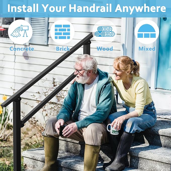 - Adjustable Height: Handrails work well on concrete and wooden steps. The adjustable design accommodates different step heights.