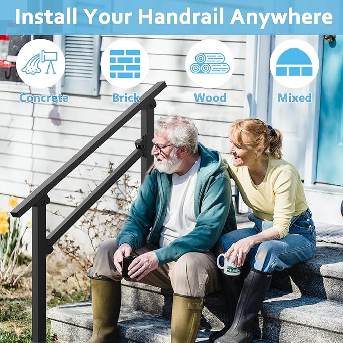 - Adjustable Height: Handrails work well on concrete and wooden steps. The adjustable design accommodates different step heights.