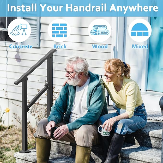 - Adjustable Height: Handrails work well on concrete and wooden steps. The adjustable design accommodates different step heights.