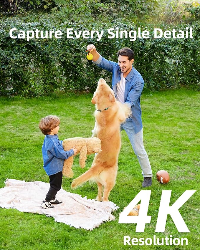 - 4K HD Detailed Ultra Clear: Record each moment with 4K resolution on your property, delivering sharp and colorful videos day and night. See faces and read license plate exactly with 16x zoom.
