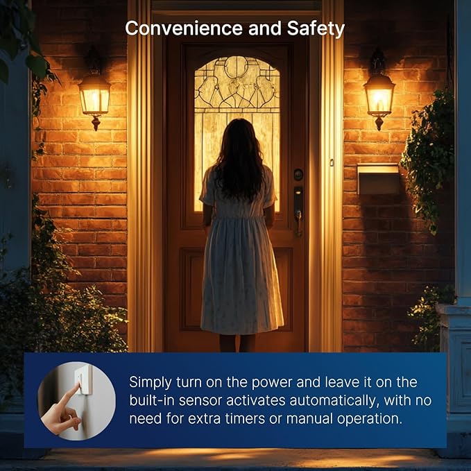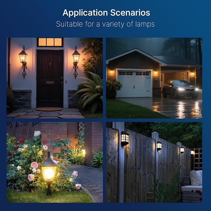 - 【Wide Outdoor Application】: Suitable for a variety of outdoor locations including but not limited to: gardens, driveways, patios, porches, entrances, yards, garages, alleys, and pathways. With its automatic on/off functionality, it is ideal for areas where illumination is desired during the night and low visibility hours
