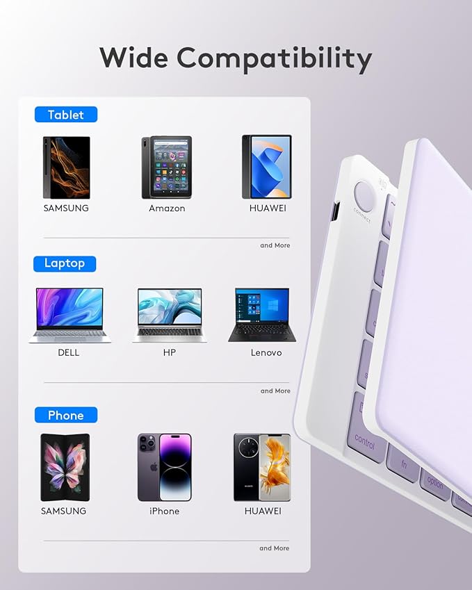 - 【Multi-system Compatible】 The Bluetooth keyboard works seamlessly with OS, iOS, Android and Windows. Maintain a stable connection and provides fast response to devices within 10 meters of operation. Compatible with a variety of devices, including Apple iPad Air, iPad 4/3/2, iPad Mini 4, iPhone 15/14/13/12/11, etc., Galaxy Tab, Galaxy Note, Surface Pro, Amazon Kindle, and other Bluetooth devices.