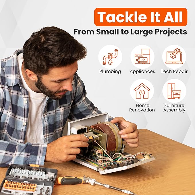 - Comprehensive Bit Selection: Our screwdriver set includes a comprehensive selection of bits to handle a wide range of screw types and sizes. From Phillips to flathead, Torx to hex, and more, this set has everything needed for tackling various projects around the home, workshop, or garage.