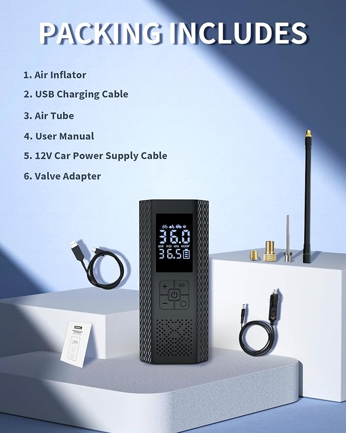 - DUAL POWER MODE AIR PUMP: TEMOLA air compressor portable features a dual power supply, allowing you to switch between cordless and electric inflation at any time. The electric air pump, which includes a 2000mAh*2 rechargeable battery, can be used to inflate the car immediately after a full charge. Additionally, you won't have to worry about running out of battery power while traveling because the portable air compressor has a 12V DC power converter for roadside situations.