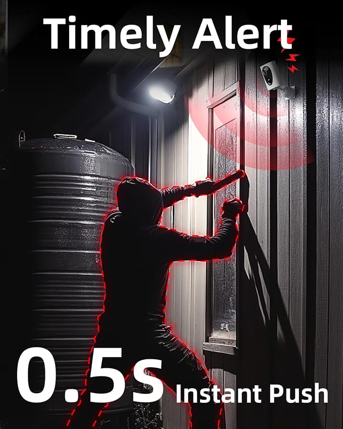 - 【Advanced PIR Motion Detection & Smart Alerts】Stay informed with wireless security camera outdoor is superior 30-foot range PIR motion detection technology. Receive instant alerts and engage in two-way communication directly through the ‘HOME V’ app. Optional cloud subscription enhances detection accuracy for humans, vehicles, and animals, minimizing false alarms.
