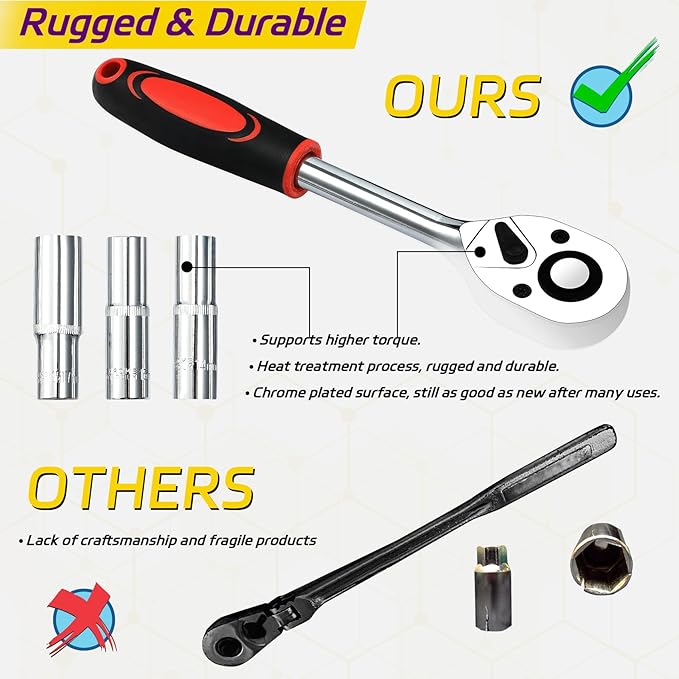 - 【CR-V Material】: Mechanics Tools Set Are Made Of High Quality High Strength Chromium Vanadium, Heat Treatment Provides Hardness And Torque For High-Performance Sleeves And Wrenches, With Anti-Corrosion Protection