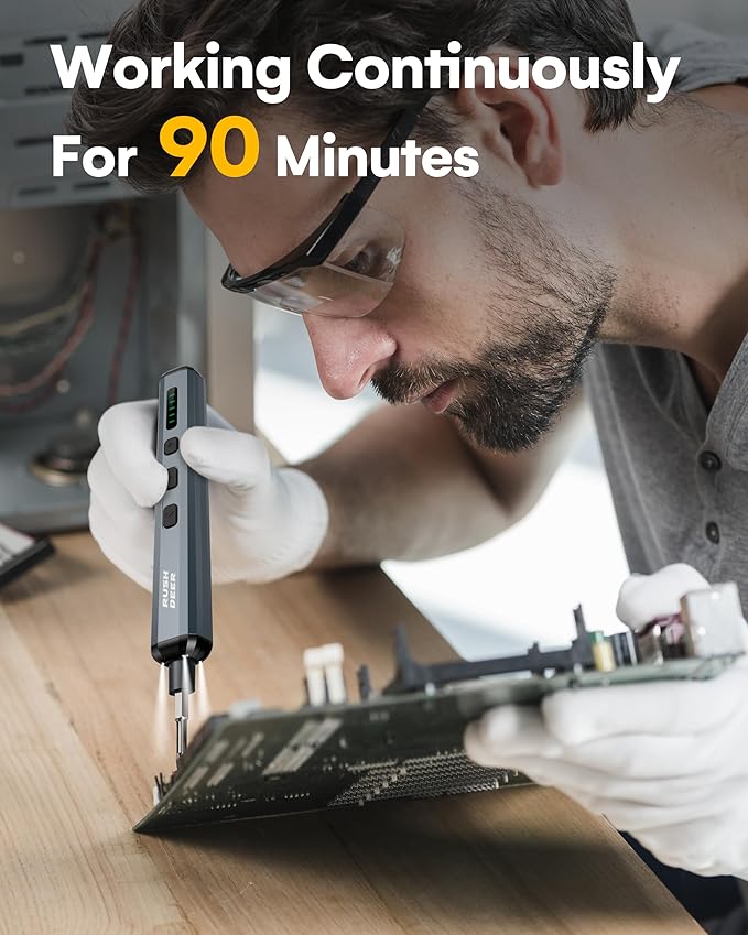 - Long-lasting Rechargeable Battery: Say goodbye to constantly changing batteries. The Rush Deer Electric Screwdriver features a long-lasting 350mAh rechargeable battery, capable of tightening up to 400+ screws on a single charge. Enjoy cordless convenience with this reliable and rechargeable tool.