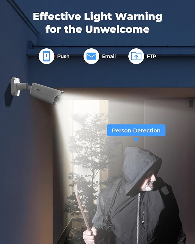 - [Smart Human Detection]: Smart Poe ip cameras can identify people to minimize unwanted alerts triggered by animals or shadows. Configure the areas you need to pay attention to and get alerted when you really should.