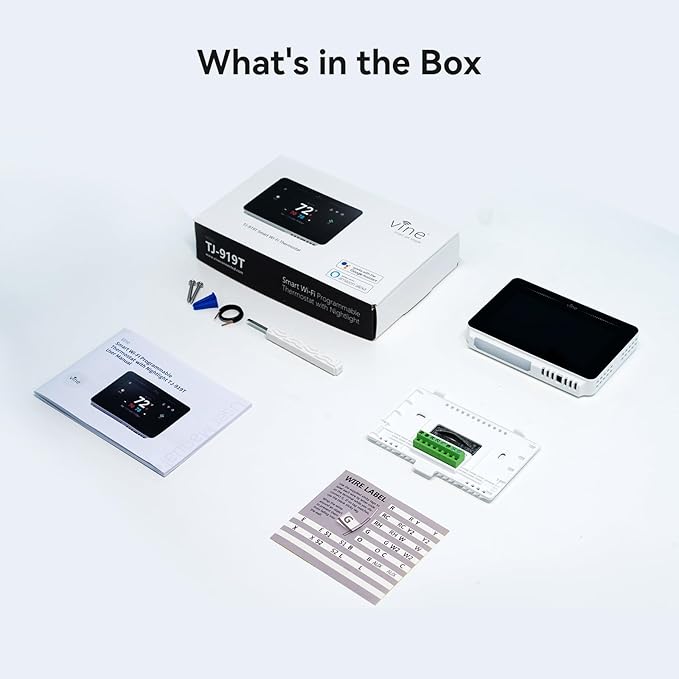 vine Programmable Thermostat for House with 4.3" Touch Screen, WiFi Smart Home Thermostat for AC and Heating, App/Voice Control, Compatible with Alexa and Google Assistant, C-Wire Required, TJ-919T