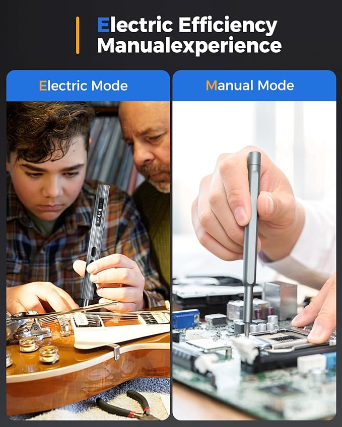 - 【All-in-One Kit for Every Repair Need】Take your electronic repairs to the next level with our all-in-one 58-in-1 electric screwdriver kit. Whether you’re a tech enthusiast or a DIY lover, this mini screwdriver is designed to handle any task—from smartphones to drones—with ease and efficiency.