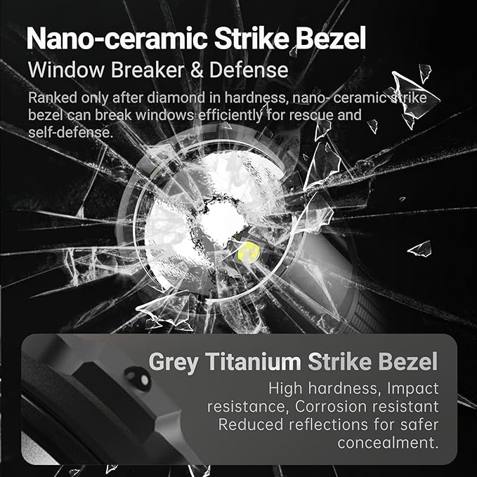 - 【MULTI-FUNCTIONAL UNIQUE DESIGN】NEXTORCH tactical flashlight patented design, TA series unique mute button for tactical, rotary magnetron, switch tactical, high brightness, medium brightness, low brightness, strobe mode, match different use needs. Five light modes 3000 lm (390m), 520 lm (160m), 70 lm (60m), momentary on, strobe, and ultra-high hardness ceramic bead attack head, hardness is second only to diamond, can quickly break the car window glass, to meet the unarmed defense, window rescue, tactical break-in and other emergency needs.