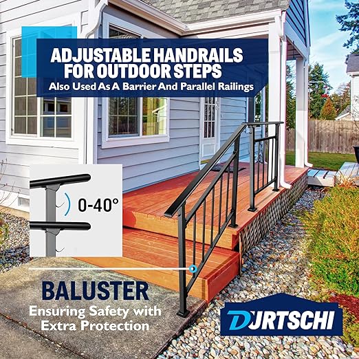 - 【Transitional Hand Railing For Any Surface】Our stair railings for outside steps seamlessly integrate with various materials - concrete, wood, brick, or a combination. The stable welding structure, along with crossbars, balusters, and bottom caps, ensures stability and a pleasing aesthetic. Choose the setup that complements your space