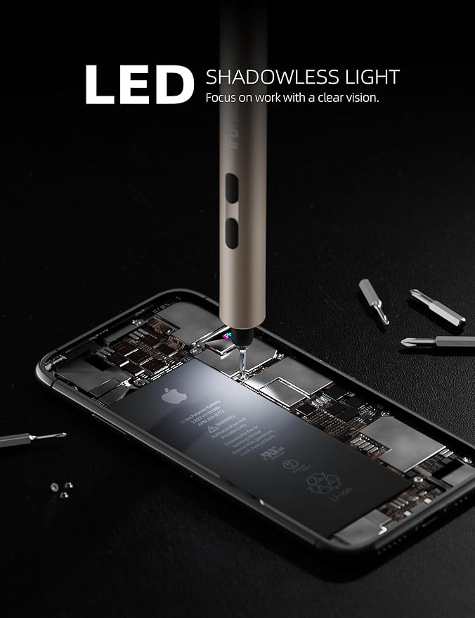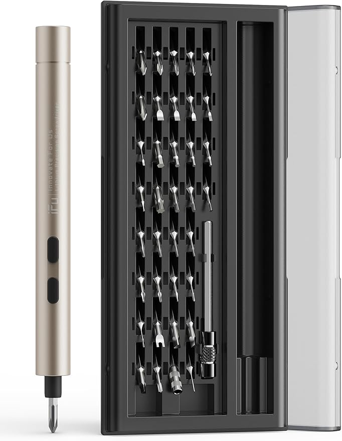 iFu Mini Electric Screwdriver, 42 in 1 Precision Screwdriver Set – Small Cordless Power Screwdriver with LED Light & 37 Magnetic Bits, Repair Tool for Phone Laptop Camera Watch Computer