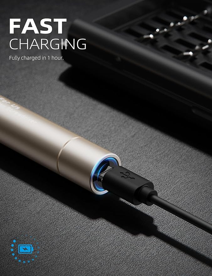 - 【Compact Aluminium Alloy Construction】This mini electric screwdriver boasts a sleek aluminium alloy shell with high-precision one-piece molding. Its ergonomic design ensures portability, comfort, and ease of use. The 360° shadowless lighting system with 3 embedded LED lights illuminates your work area, ideal for precise tasks. Perfect for gifting to fathers, friends, and DIY enthusiasts.