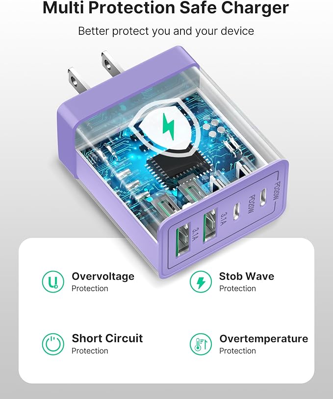 - Included Components : 2 * 40W 4-Port USB Wall Charger - Purple