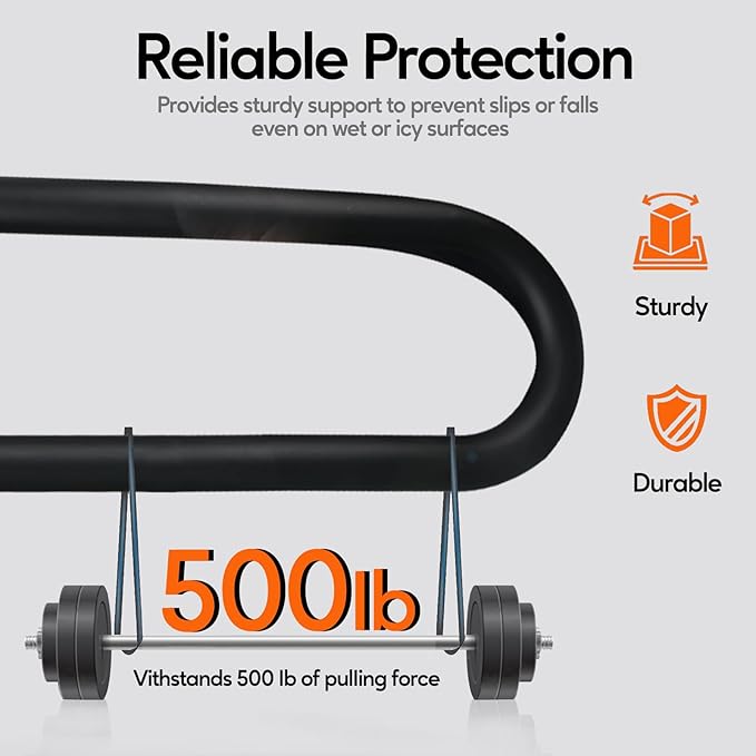 - INTEGRATED STRENGTH: Featuring a seamless welded design, our stair railing provides unparalleled integrity & 500LBS bearing capacity. This one-piece safety grab bar offers maximum stability for concrete or wood steps.