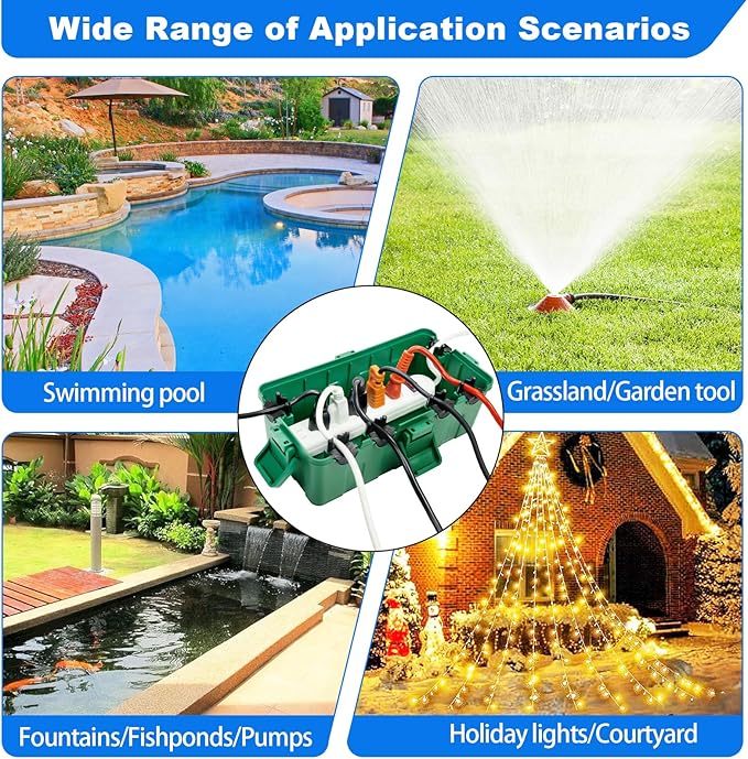 - Wide Applications:Ideal for a variety of outdoor & indoor applications including patio, lawn and garden power tools,holiday lighting, landscape decorations, pool pumps, fountains, fish ponds, patio heaters, hot tub, air conditioners, security cameras and more.