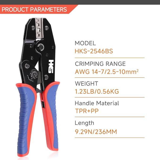 HKS Crimping Tool for Solar PV Cable Connectors - Ratcheting Wire Crimpers - AWG 14-8 (2.5-10mm²) - Ratchet Terminal Crimper - Electrical Crimping Tool