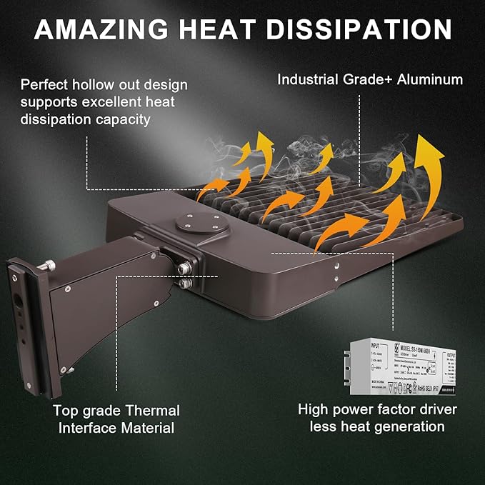 - 👷♂️【Fast & Easy Installation】--Our LED parking lot area light Unit comes with an adjustable direct arms mount designed to fit on standard square and round pole. With adjustable direct arms mount the LED Parking Lot light can be angled up or down depending on if you are mounting vertical or horizontal. High performance of power factor >0.9, more than 50000hours lifespan, provides a continuous, efficient, energy-saving led lamp posts outdoor lighting environment.