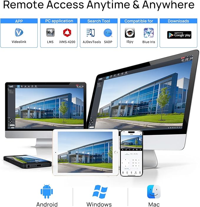 - 【Easy P2P Monitoring】- This VIKYLIN 4k poe ip camera can be accessed from the Google Play Store via a smartphone, and the ’VideoLink’ app can be downloaded to view the camera remotely anytime and anywhere. (➤ Please note that your camera is only compatible with one of these software) Any questions pls contact email us.