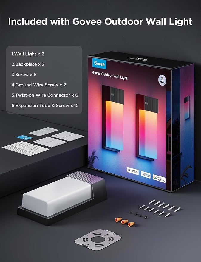 - Dream-like Lighting Effects: Govee outdoor wall lights can simultaneously display at least 3 colors horizontally. Enjoy a flexible DIY experience and 45 immersive scene modes for creative outdoor decorations.