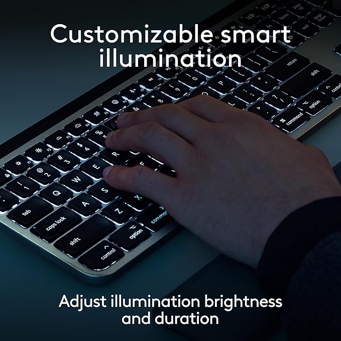 - Smarter Illumination: Backlit keyboard keys light up the moment your hands approach this wireless keyboard for Mac; have more control of backlighting duration and brightness on Logi Options+ (1)