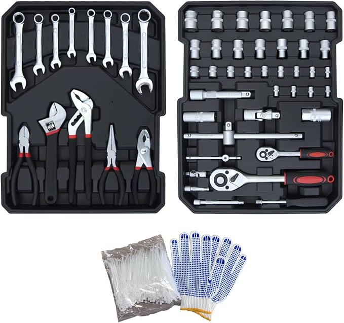 - Comprehensive assortment of tools:This set includes a wide range of professional-grade tools such as wrenches, sockets, screwdrivers, hammer, tape measure, and pliers. These tools cover various sizes and types to handle different tasks efficiently.