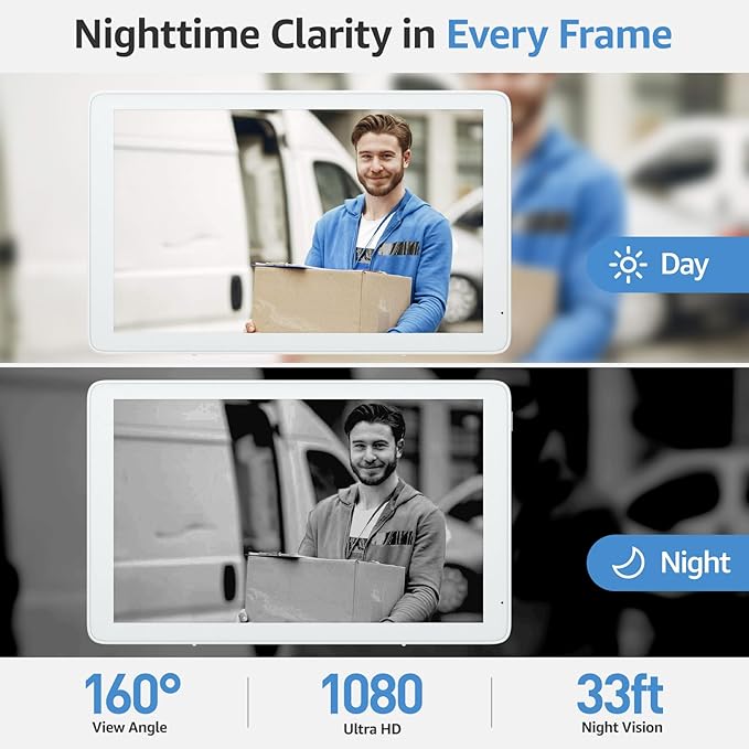 - 【8-Inch 1080P Touch Screen Monitor】Enjoy the elegance of a minimalist system that is even easier to use than a smartphone. The 8-inch display boasts a crystal-clear 1080P resolution, offering you sharper images. Whether placed in the bedroom, living room, or kitchen, you can effortlessly monitor everything outdoors. With all functions integrated on the monitor, including answering calls, unlocking doors, and monitoring, the wireless video doorbell camera provides you with comprehensive control.