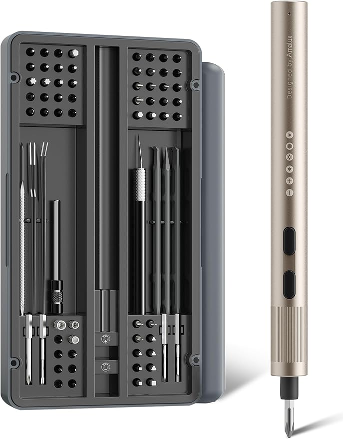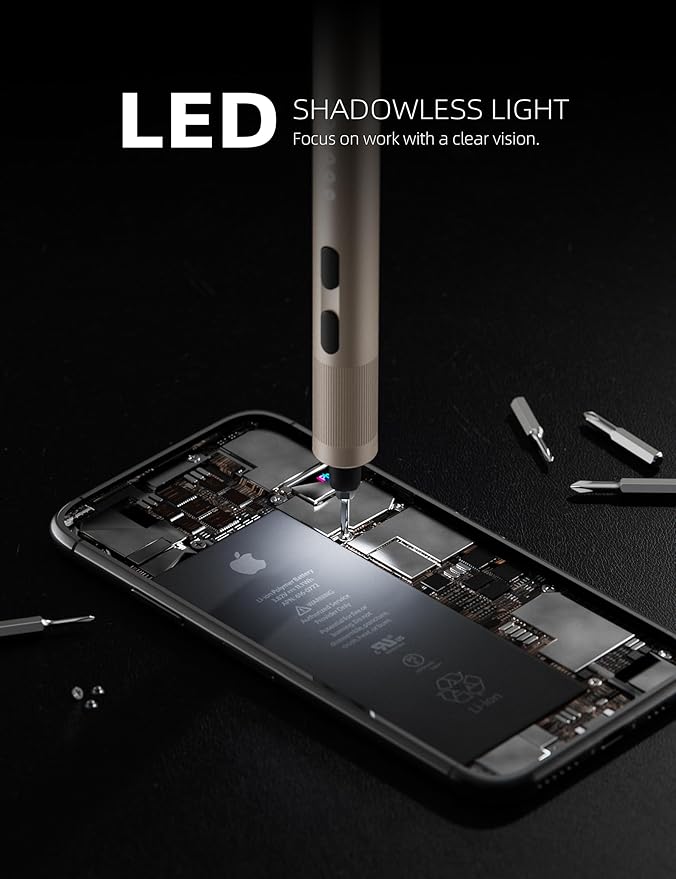- Electric Screwdriver with Manual and Electric Dual Mode:Enjoy versatility with manual and electric modes. Switch to manual mode (up to 3 N.m torque) for more control, or use electric mode (0.2 N.m) for precision tasks. Perfect for repairing electronics like smartphones, laptops, cameras, and watches, ensuring efficiency and screw protection.